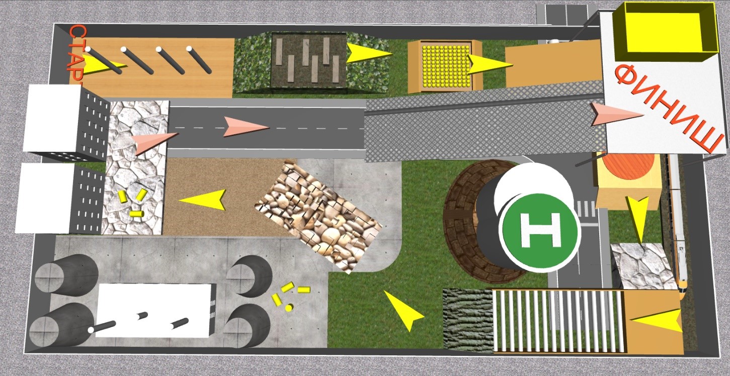- На соревнованиях участникам предстоит пройти полигон, на котором смоделированы участки различной сложности: